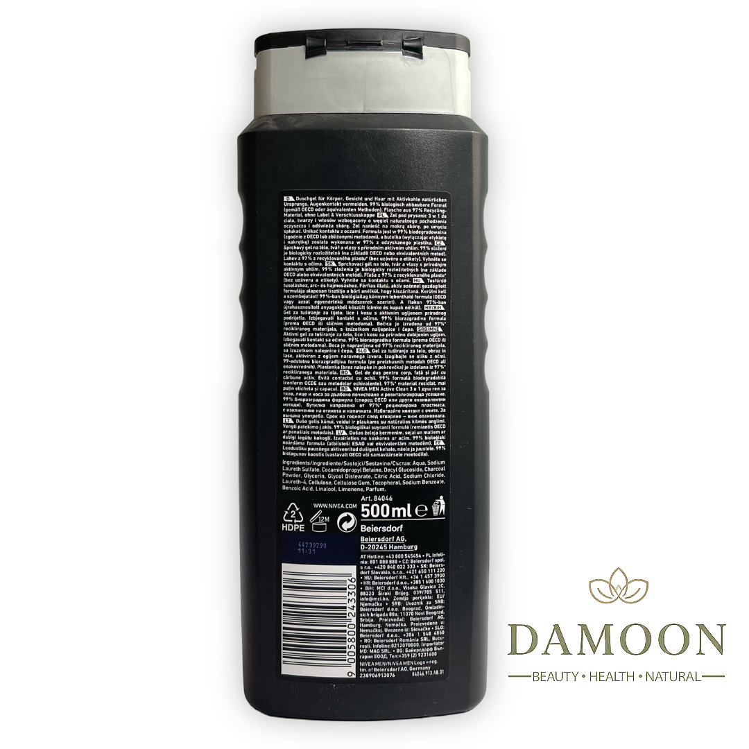 شامپو بدن ۳ در ۱ نیوا مردانه مدل Active Clean با کربن فعال