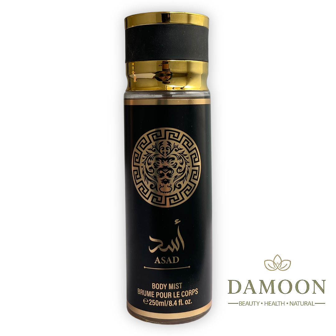 اسپری بدن Asad Body Mist از برند اسد (Asad by Lattafa یا CEO Fragrances)، با فرمولاسیون سبک و غنی از نتهای فلفل سیاه، تنباکو، وانیل، پاچولی و عنبر، رایحهای جسورانه و جذاب مردانه ایجاد میکند که برای فصلهای سرد ایدهآل است. این محصول به عنوان بادی میست (رقیقتر از ادکلن)، بدون ایجاد حس چسبندگی، پوست را آبرسانی کرده و بوی بد را کنترل میکند. فاقد الکل مضر، hypoallergenic و مناسب پوستهای حساس. حجم ۲۵۰ میلیلیتر، با بستهبندی بطری مشکی-طلایی لوکس با درپوش اسپری. برند اسد، تولیدکننده اماراتی با الهام از عطرهای لوکس مانند دیور ساواژ، این اسپری را به گزینهای مقرونبهصرفه و محبوب در بازار ایران تبدیل کرده است.