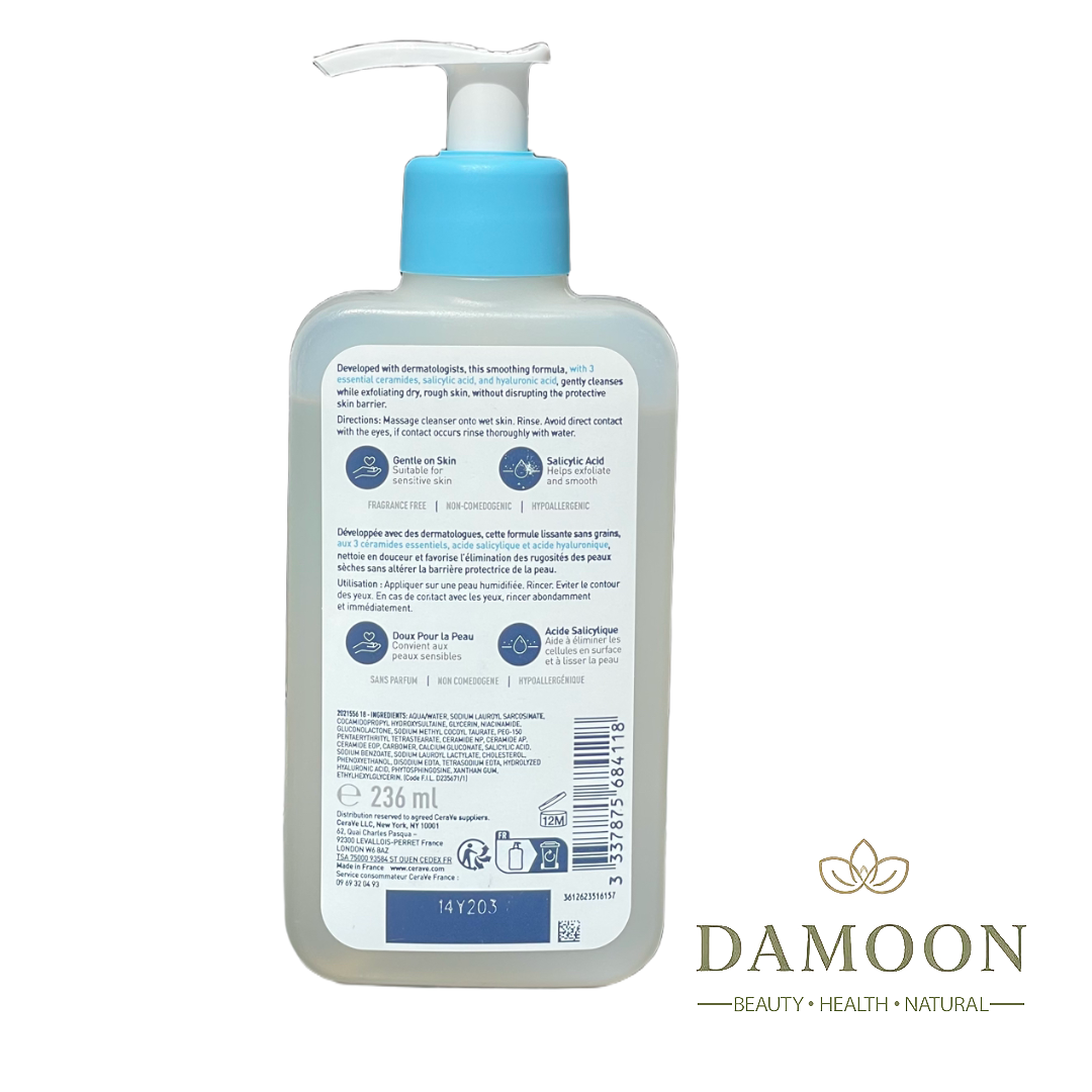 اکسفولیانت ملایم با ۰.۵% اسید سالیسیلیک، مرطوبکننده با هیالورونیک اسید، بدون عطر، بدون کامدوژنیک، حاوی ۳ سرامید ضروری، توسعهیافته توسط متخصصان پوست
