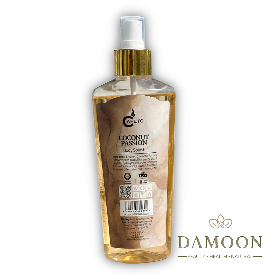 اسپری بدن Cafeto Coconut Passion، محصولی الهامگرفته از رایحههای لوکس مانند Victoria's Secret، با نتهای آروماتیک (توت سیاه، نارگیل شیر در بالا)، قلب نارگیل و گلهای تازه (در میانه) و پایه وانیل و مشک برای حس گرمسیری و شیرین (شبیه توتفرنگی کرمی با نارگیل) طراحی شده و unisex مناسب است، اما برای زنان برجستهتر. این اسپلش سبک با ماندگاری ۴-۶ ساعته، پخش بوی ملایم و بدون ایجاد لک روی لباس، پوست و مو را تازه و هیدراته نگه میدارد و برای فصلهای گرم ایدهآل است. فرمول hypoallergenic و بدون پارابن، برای پوستهای حساس ایمن است و cruelty-free. حجم ۲۵۰ میلیلیتری آن برای استفاده ماهانه کافی است و بخشی از سری Cafeto، با تمرکز بر رایحههای طبیعی و شاداب. مناسب برای زنان جوان با سبک زندگی فعال، برای اعتمادبهنفس روزانه با بوی دلپذیر مداوم.