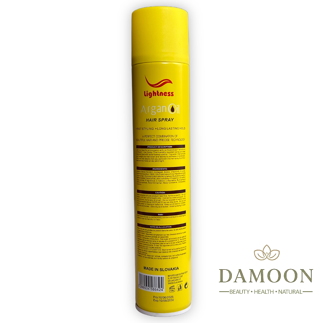 اسپری Moroccan Argan Oil Hair Spray از برند لایتنس (Lightness)، با فرمولاسیون غنی از روغن آرگان مراکشی (برای تغذیه و درخشندگی)، پروتئینهای هیدرولیز شده (برای تقویت و جلوگیری از ریزش) و ترکیبات گیاهی، موهای آسیبدیده را ترمیم کرده و حجم و حالت طبیعی میبخشد. این محصول سالنی با بافت سبک، موها را از ریشه تا نوک محافظت میکند و از شکنندگی و موخوره جلوگیری مینماید، در حالی که pH متعادل آن پوست سر را آرام نگه میدارد. فاقد پارابن، سولفات و مواد شیمیایی مضر، hypoallergenic و مناسب موهای حساس، رنگشده یا حرارتدیده. حجم ۴۲۰ میلیلیتر، با بستهبندی قوطی زرد شیک و نازل اسپری. برند لایتنس، متخصص در محصولات ترمیم مو، این اسپری را به گزینهای مقرونبهصرفه و مؤثر برای بانوان ایرانی تبدیل کرده است.